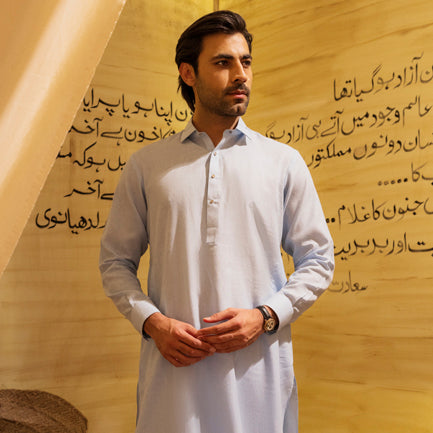 This Collection encapsulates the charm of Wasim Akram’s personality, curated with neutral warm tones & an exceptional quality blended fabric along with an Italian collar that will put you in limelight. Manifest grace like the Extraordinaire himself